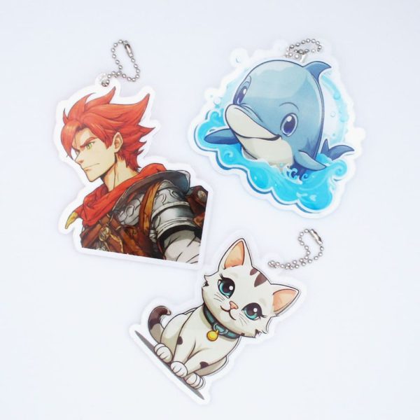 デザインにあわせた形状で作成できる、人気のフリーカットのアクリルキーホルダー!